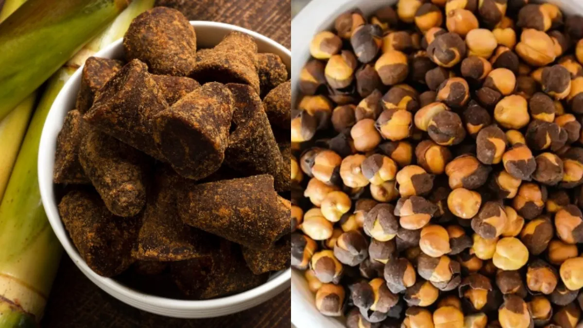 खून की कमी को दूर करने के लिए अक्सर गुड़ और चने का सेवन करने की सलाह दी जाती है। गुड़ और चने का फूड कॉम्बिनेशन आपकी मसल और बोन हेल्थ के लिए काफी ज्यादा फायदेमंद साबित हो सकता है। इसके अलावा अगर आप अपनी वेट लॉस जर्नी को आसान बनाना चाहते हैं, तो गुड़ और चने को अपने डेली डाइट प्लान का हिस्सा बना लीजिए। गुड़ और चने मिलकर आपकी बॉडी के मेटाबॉलिज्म को बूस्ट करने में कारगर साबित हो सकते हैं।