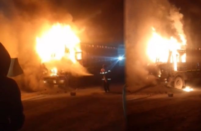 रायपुर. जिले के विधानसभा क्षेत्र अंतर्गत सरिया फैक्ट्री में देर रात खड़ी ट्रक में अचानक भीषण (Burning Truck In Raipur) आग लग गई. आग लगते ही फैक्ट्री परिसर में अफरा-तफरी मच गई. सूचना पर दमकल की टीम मौके पर पहुंची, लेकिन काफी देर तक मशक्कत के बावजूद आग पर काबू नहीं पाया जा सका. ट्रक जलकर खाक हो गई. घटना का वीडियो भी सामने आया है. (Fire In Truck)