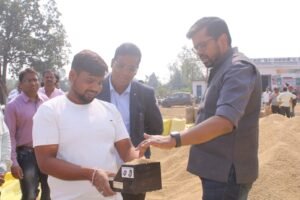 सालर धान खरीदी केन्द्र में सचिव ने किसान से एग्रीस्टेक में पंजीयन के बारे में पूछा। किसान ने बताया कि उसकी जमीन अलग अलग स्थानों में फुटकर खेत है, जहां जंगली सुअर का आना जाना लगा रहता है। किसान और स्थानीय गणमान्य नागरिक कमल सिदार ने सचिव को स्मृति चिन्ह भेंट किया। सचिव हिमशिखर गुप्ता ने एग्रीस्टेक की जानकारी को कम्प्यूटर रिकार्ड का अवलोकन किए। साथ ही गोदाम, शेड, परिसर में भवन आदि का अवलोकन किया और विभिन्न मद से निर्मित और निर्माणाधीन कार्यों के बारे में अधिकारियों से चर्चा किया। इस दौरान कलेक्टर डॉ. संजय कन्नौजे, पुलिस अधीक्षक आंजनेय वार्ष्णेय, मार्कफेड अधिकारी शीतल भोई, सहायक आयुक्त व्यासनारायण साहू, खाद्य अधिकारी गणेश कुर्रे, कृषि अधिकारी आशुतोष श्रीवास्तव, एसडीएम वर्षा बंसल, तहसीलदार प्रकाश पटेल, स्थानीय गणमान्य नागरिक रामकुमार थूरिया उपस्थित थे।