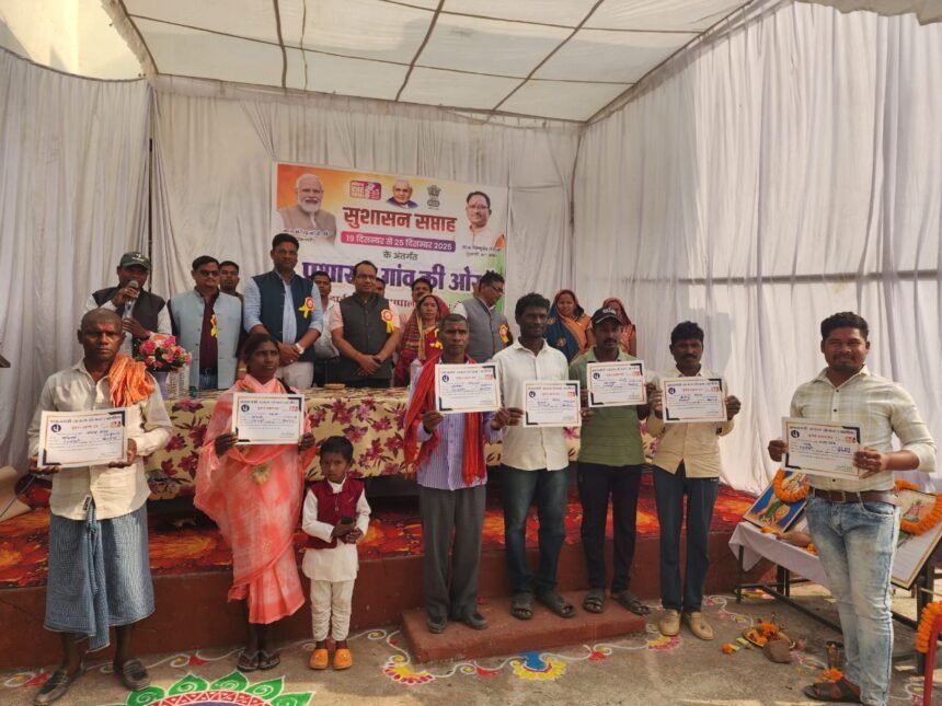सारंगढ़–बिलाईगढ़, 22 दिसंबर 2025/जनपद पंचायत बिलाईगढ़ के ग्राम पंचायत गेडापाली के हाईस्कूल में सुशासन-सप्ताह प्रशासन गाँव की ओर समाधान शिविर का आयोजन किया गया। शिविर का शुभारंभ जिला पंचायत सभापति डॉ. दिनेशलाल जोल्हे, प्रेमलता नेताम, जनपद सदस्य भोजराम अजगल्ले, संतन सिंह सिदार, रेवती चंद्रा, पवन जायसवाल, योगनारायण जायसवाल, गिरवर निराला, अन्य जनपद सदस्यों, धीरज दीक्षित सिंह, श्यामलाल साहू, रमेश साहू, कमल पटेल, गुलशन महिलांगे, प्रफुल्ल रजक अनुविभागीय अधिकारी (रा), मुख्य कार्यपालन अधिकारी जनपद पंचायत बिलाईगढ़, तहसीलदार भटगांव एवं समस्त जिला स्तरीय ब्लॉक स्तरीय अधिकारियों की उपस्थिति में किया गया।