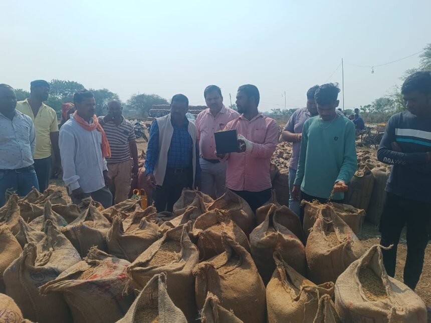कलेक्टर डॉ संजय कन्नौजे एवं अनुविभागीय अधिकारी सारंगढ़ के निर्देश पर तहसीलदार शनि पैकरा द्वारा कोसीर धान उपार्जन केंद्र में आकस्मिक निरीक्षण किया गया। निरीक्षण के दौरान धान की नमी, आवश्यक साफ सफाई एवं हमालों को सही तौल करने का निर्देश दिया गया। तहसीलदार ने सभी कृषकों को अपील किया कि सभी अपना धान साफ सफाई के साथ उपार्जन केंद्र में लाए। धान फड़ में जांच के समय किसान रमेश पिता गौतम निवासी सिंघनपुर 55 बोरी, राजेश्वरी पति नरोत्तम105 बोरी , मालिकराम पिता फ़िरत राम कोसीर 40 बोरी को आवश्यक सफाई करने पश्चात ही खरीदी करने का निर्देश दिया गया। धान के संबंध में पंचनामा बनाया गया जिसे उच्चाधिकारी को प्रेषित किया गया। मौका स्थल पर नोडल अधिकारी कृष्णकुमार साहू , आनंदराम सिदार, फड़प्रभारी हमाल मुकर्रदम आदि कृषक उपस्थित रहे।